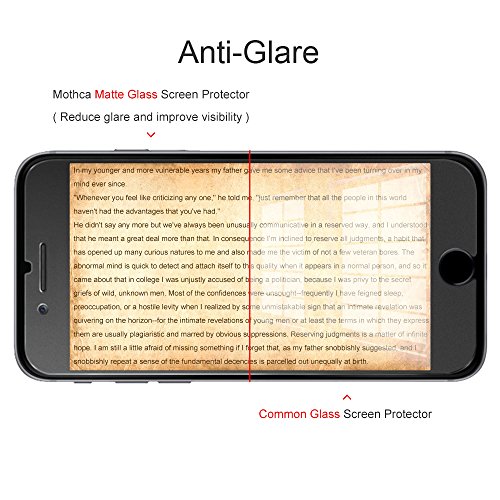 -. Binding : Wireless Phone Accessory -. Brand : Mothca -. Feature : Made from Japanese highest quality glass-Asahi Glass(AGC),Mothca matte screen protector is matte finish but also HD clear. While some other sellers sell matte glass which has poor clarity and transparency, we promise you never needn't to worry about same problem for Mothca Matte Glass. / The matte finish tempered glass using same technology as Kindle E-reader matte screen, no screen glare, even in bright sunlight, no dazzling, easy reading outdoor or under light. / The perfect matte surface has silk like touch feeling, magically resists dirt, sweat and annoying fingerprints, very little frictional resistance even for hand sweating. / A special polishing is crafted to edge of the glass to give a more smooth touch feeling, go further than 2.5D round edge, not easy to be broken and extremely durable.9H hardness, protect your iPhone 7 Plus screen from scratches, daily wear and high impact drops. / What is included:1 piece Mothca matte screen protector for iPhone 7 Plus, cleaning set, dust remover, squeegee, all these are in beautiful retail package. Lifetime Replacement Warranty and 100% Satisfaction Guarantee by Mothca free of charge, feel free to contact our customer service if there's any problem. -. Label : Mothca -. Manufacturer : Mothca -. PackageQuantity : 1 -. ProductGroup : Wireless -. ProductTypeName : WIRELESS_ACCESSORY -. Publisher : Mothca -. Studio : Mothca -. Title : iPhone 7 Plus Matte Glass Screen Protector, Mothca Anti-Glare & Anti-Fingerprint No Dazzling 9H Hardness HD Clear Tempered Glass Shield Film for iPhone 7 Plus,Smooth as Silk and Amazing Touch Feeling