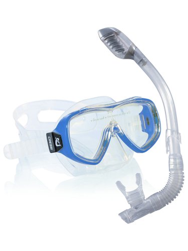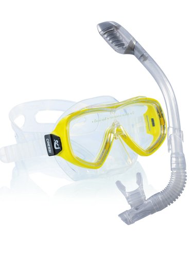 This premium snorkeling combo set for kids is an iSnorkel.com exclusive! The Cressi Sub dry snorkeling set brings together two premium products in one package, perfect for the young snorkeler.Ondina Kids Silicone Mask:Designed to fit children and young adults, this mask will fit most children ages 4-10 Single lens window for great field of view Clear reinforcing pillar between the nose piece and brow frame adds strength and durability without sacrificing visibility Soft, hypoallergenic transparent silicone conforms to many face shapes Seals out water with the strap just comfortably snug - no more uncomfortable red rings on the face after snorkeling Junior Dry Snorkel:Everything from the length and width of the snorkel tube to the mouthpiece is designed and sized for young children ages 3-10 Just like the adults' version, the Dry Junior has the Cressi Sub original anti-splash top with a special float valve that seals the tube as you dive, almost totally preventing the entrance of water as the snorkel is submerged The lower end has a corrugated section that is smooth on the inside for ease of breathing - it lets the shape of the snorkel match the shape of your child's face, instead of forcing the child to bite hard on the mouthpiece to keep it in place Soft, hypoallergenic transparent silicone mouthpiece for safety and comfort while snorkeling Clip to secure the snorkel to any maskNote: To make this set an even better value, it ships without rigid retail clam shell packaging.