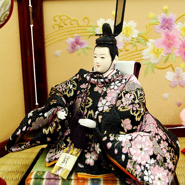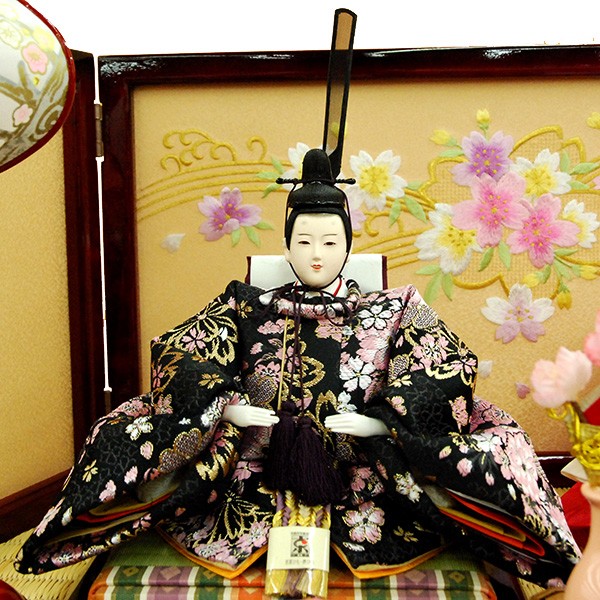 ・台座・屏風等には落ち着いた色目の雛人形セット。