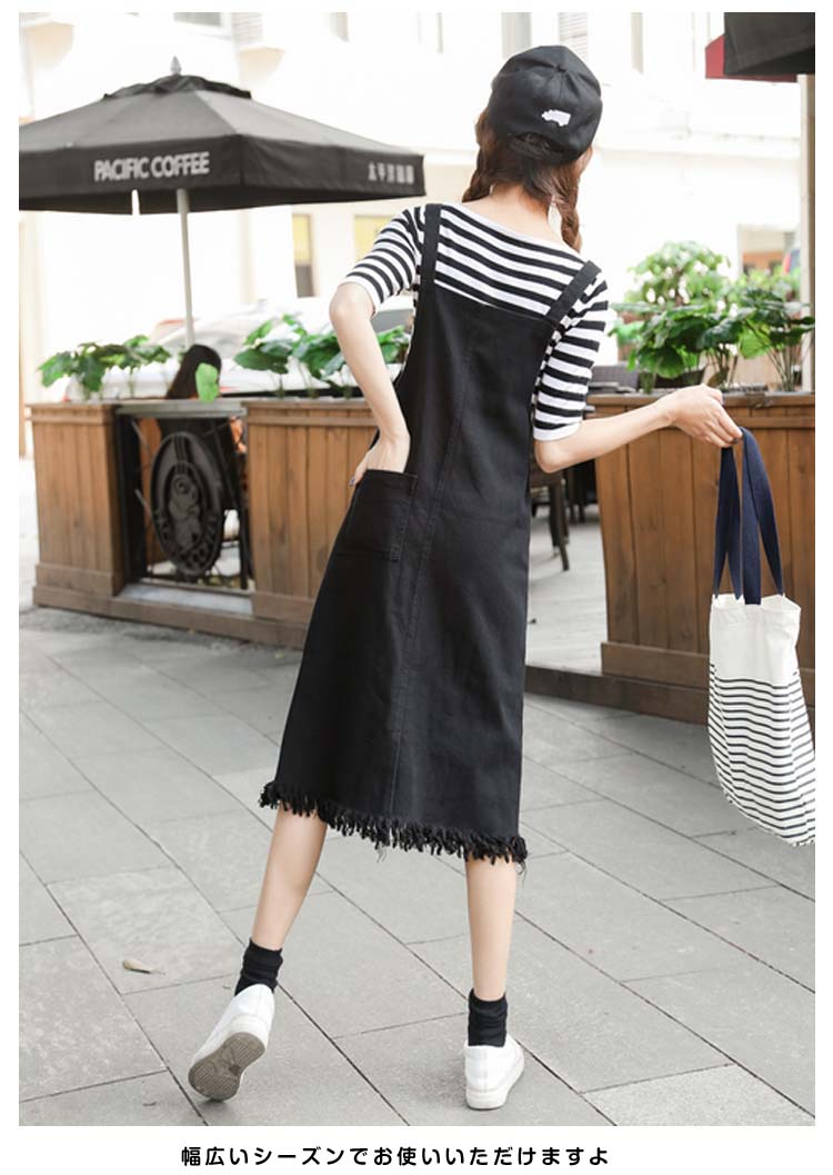 | 大人可愛い着こなしの楽しめるミドル丈が大人気ポイントのサロペットスカート膝が隠れる長さで女性らしさを残しつつ、大人っぽいカジュアル感とベストバランスインナーや羽織るものなど、合わせるアイテム次第でロングシーズン着回せる幅広いシーズンでお使いいただけますよ | |