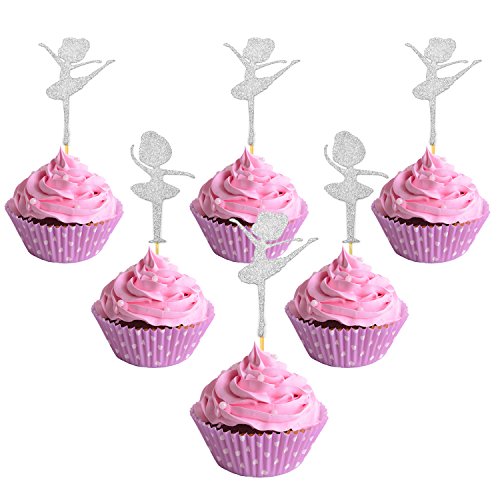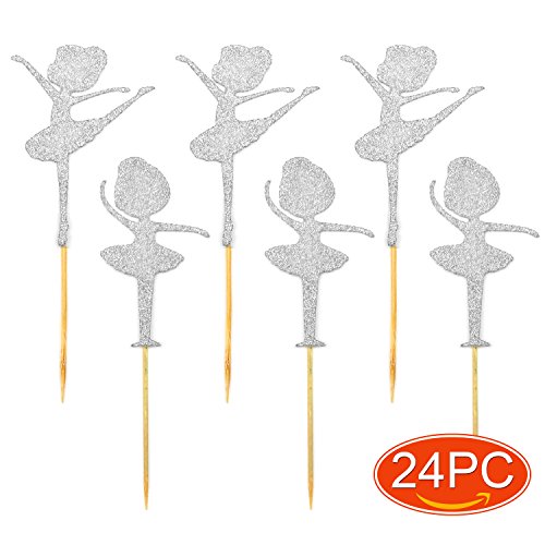 Elesa Miracle 24pc Glitter Silver Ballerina Cake Cupcake Topper, Wedding Bridal Shower Birthday Decoration Fairy Cake Topper ( 24pc Silver Dancing Girl)