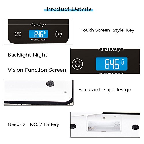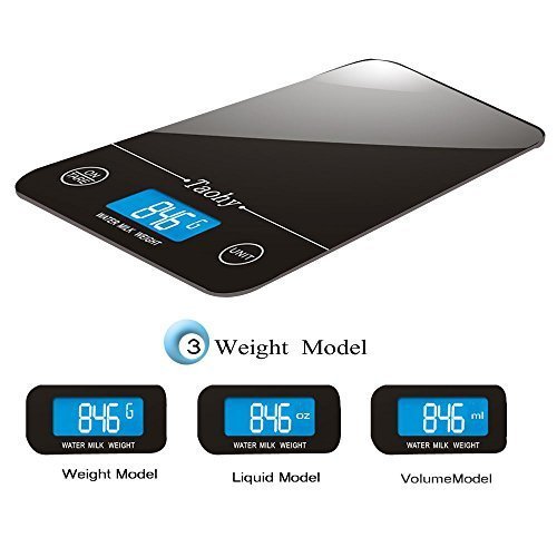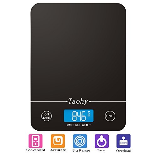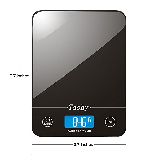 Electronic Scale,Taohy Kitchen Scale with Tempered Glass Balance Platform,Digital Scale 11lb/5kg x 1g/0.1oz, Available for Volume and Weight(Black)