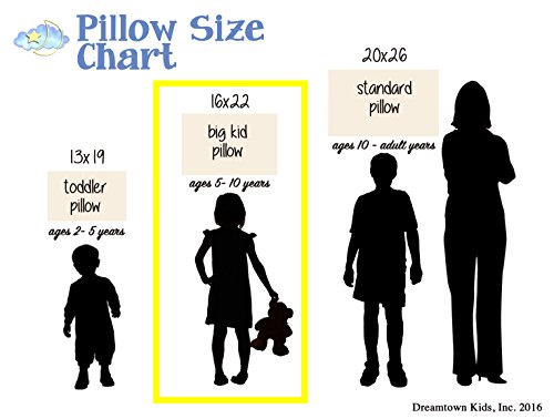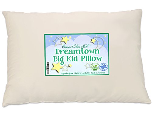 Dreamtown Kids Large Size Kids Pillow (Big Kid Pillow) with a Soft Organic Cotton Shell 16x22, Not Over Stuffed, Made In USA