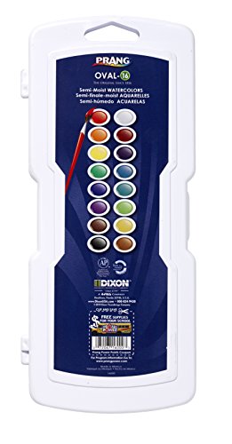 Prang Oval Pan Watercolor Set, 16 Classic Colors with No. 9 Brush (16000)