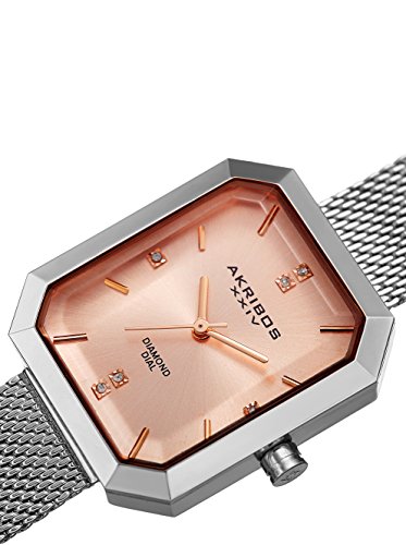 Akribos XXIV Women's Quartz Stainless Steel Casual Watch, Color:Silver-Toned (Model: AK909SSPK)