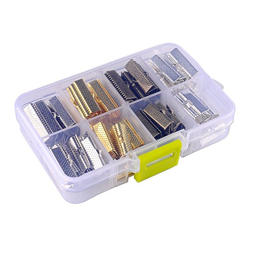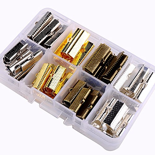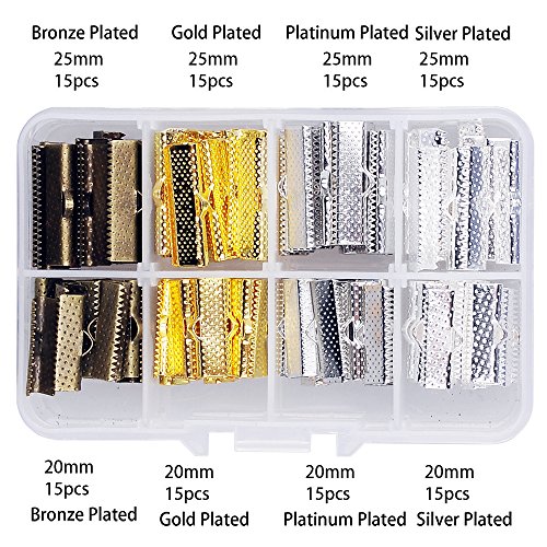 In A Box(120pcs/box) Kit with Mixed Color 20mm and 25mm Ribbon Bracelet Bookmark Pinch Crimp Clamp End Findings Cord Ends Fasteners Clasp Leather Crimp Ends Jewelry Making Findings