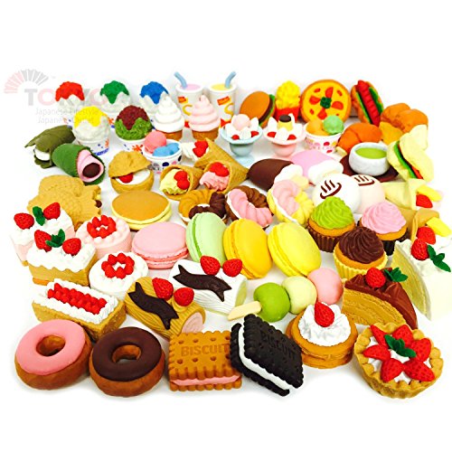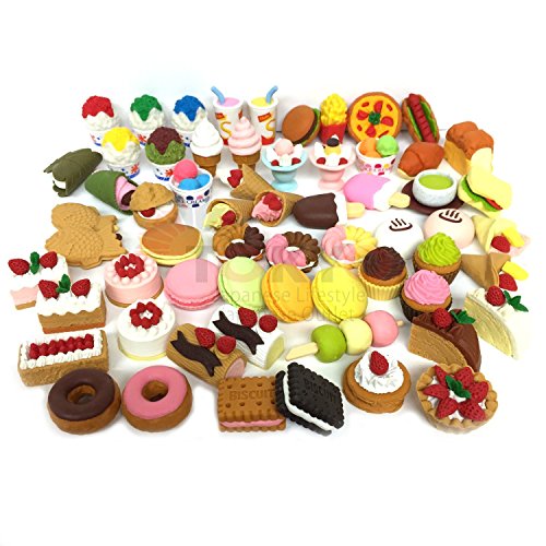 -. Feature : Authentic Iwako erasers from Japan (Erasers are exclusively selected by Tokyo Japanase Outlet) / 20 Assorted food and desert style erasers (no duplicates!) / Cake, ice cream, shaved ice, bakery, fast food and Japanese sweets / 1" X 1" (some may be smaller or bigger than 1") Eco friendly non-toxic erasers / Fun gifts, collectible, incentives, party favors etc.