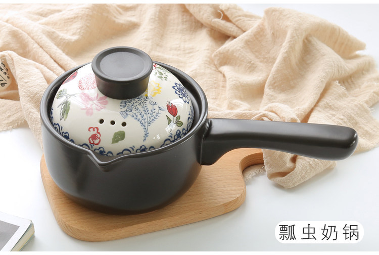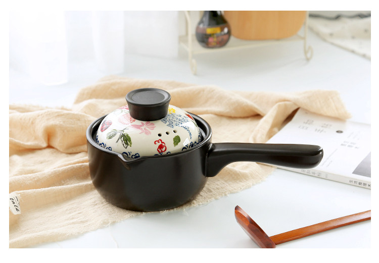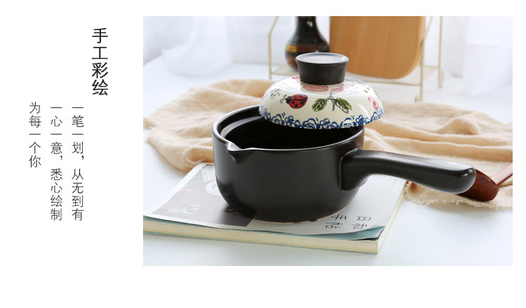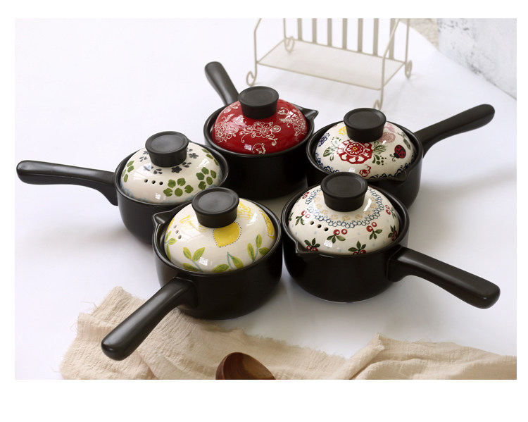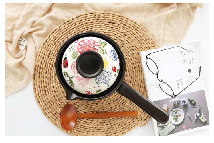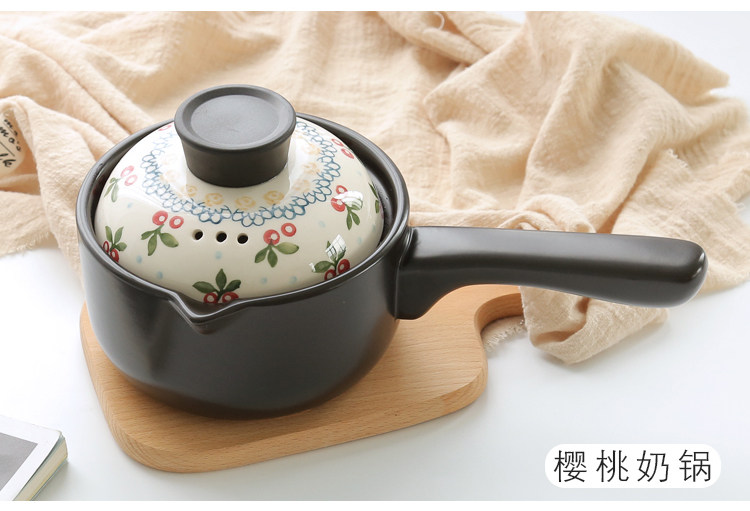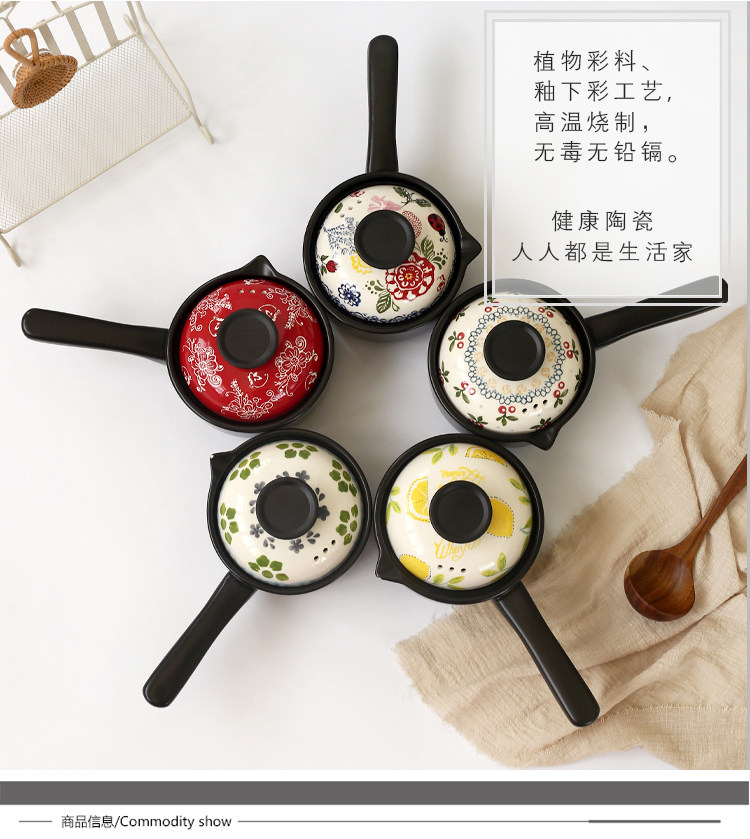 【店家推荐】:釉下彩手绘烘焙系列的小奶锅,盖子的工艺跟其他餐具一样均是人工釉下彩手绘,盖子顶是电木顶,更好的隔热效果,锅身是陶土加锂辉石制作,利用锂辉石耐高温稳定的特点,使锅在耐住明火高温的同时也不会易裂。