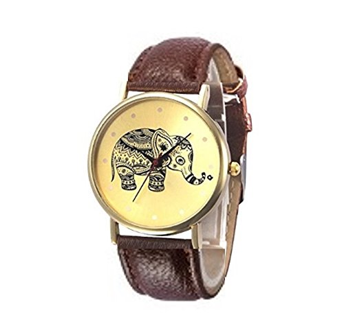 PlanetZia Cute Elephant on Gold Dial Watch with Brown Buckle Band TVT-13210