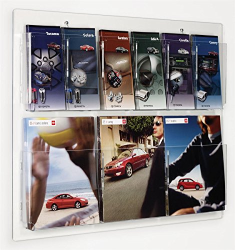 Displays2go Hanging Magazine Rack with Adjustable Pockets, 29 x 23 inches - Clear Acrylic (RP6CLR)
