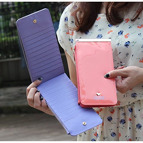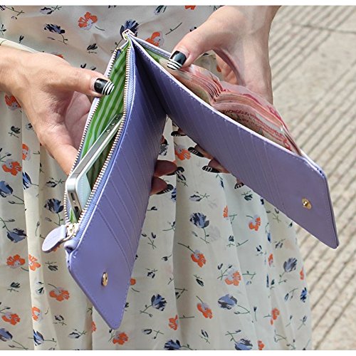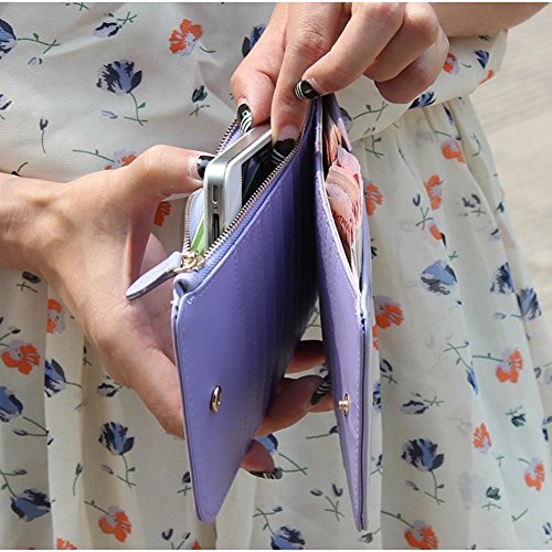 - Feature : Material: PU Leather / Six Color Available: White, Purple, Black, Green, Pink, Watermelon Red / Size: 8.34x4.13x0.79 inches, Weight: 0.31pounds / Designed to hold cash, cards and other little things / You can simply hold it on hand or put it in bag
