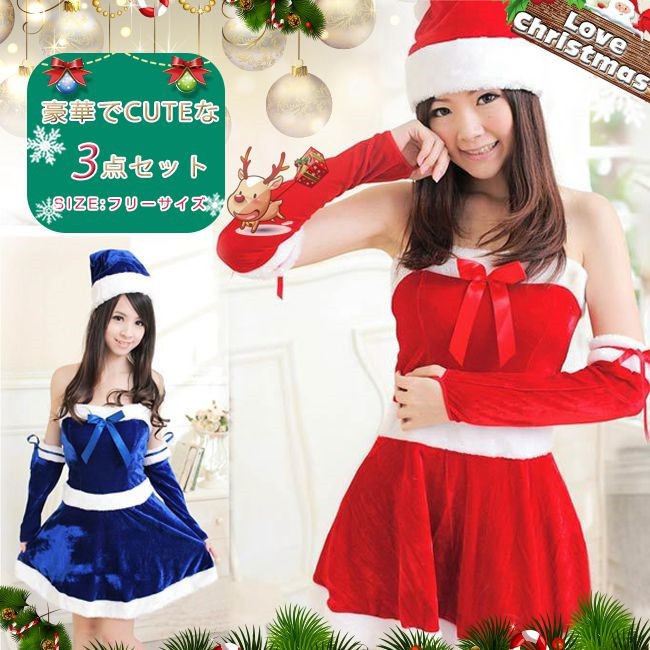 サンタ コスプレ レディース クリスマス 衣装 セクシー 背中見せ ブルー レッド コスチューム サンタコス 仮装 変装 大人 服 セットアップ かわいい サンタクロース パーティーグッズ イベント用品 余興 xmas Christmas cos 女性用
