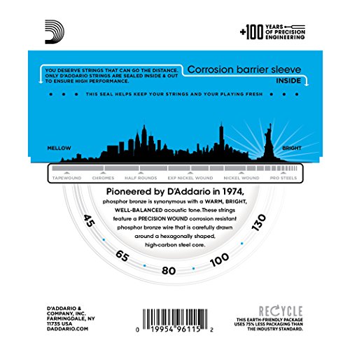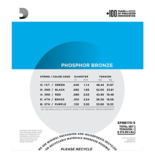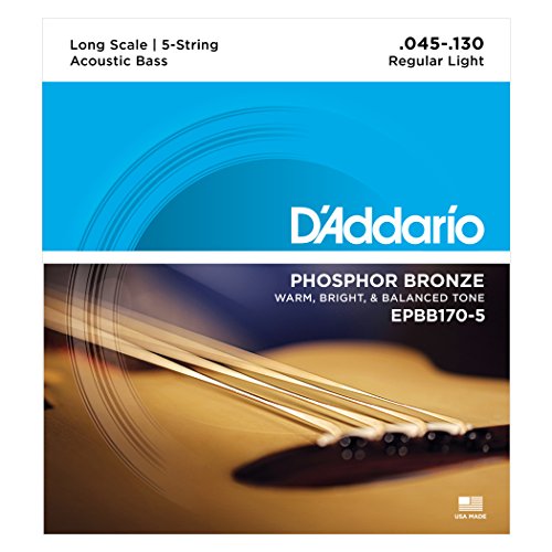 D'Addario EPBB170-5 Phosphor Bronze 5-String Acoustic Bass Strings, Long Scale, 45-130