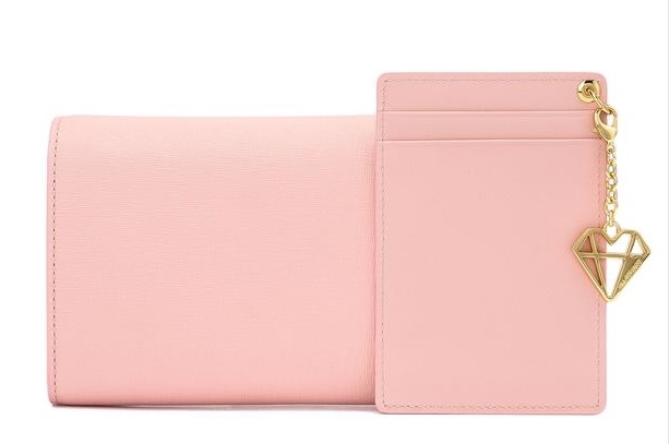 깔끔한 솔리드 컬러감에 금장 쁘띠 다이아몬드 장식으로 포인트를 준 심플한 외관의 중지갑입니다.
