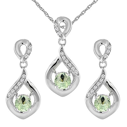 -. Binding : Jewelry -. Brand : Sabrina Silver -. Department : womens -. Feature : 14K Solid Gold / Naturally-vibrant, superior quality color gemstone / High Quality Genuine Diamond Accents / Complimentary gold chain included -. ProductGroup : Jewelry -. ProductTypeName : FASHIONOTHER -. Title : 14K White Gold Natural Green Amethyst Earrings and Pendant Set with Diamond Accents Round 4 mm