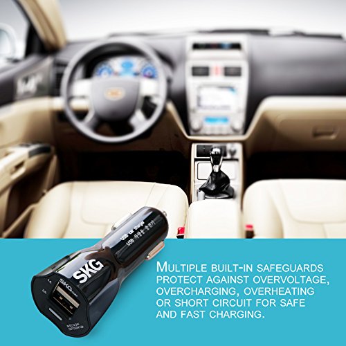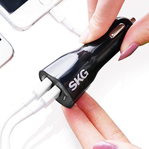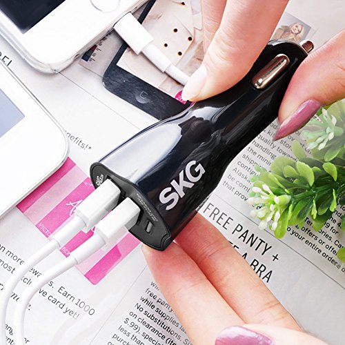 SKG Upgraded Pure Copper Interface Dual USB Port Car Chargers (2 PCS) - USB Charger Car Adapter With Overcurrent Protection (Black, 2 PCS) 58081
