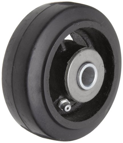 RWM Casters Mold-On Rubber on Iron Wheel, Roller Bearing, 250 lbs Capacity, 4" Wheel, Dia, 1-1/2" Wheel, Width, 1-7/8" Plate Length