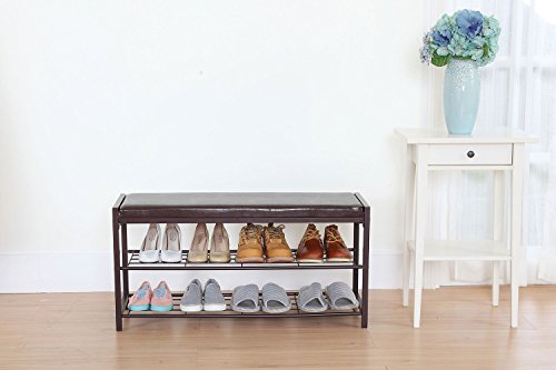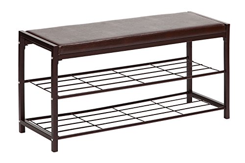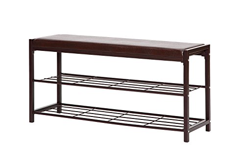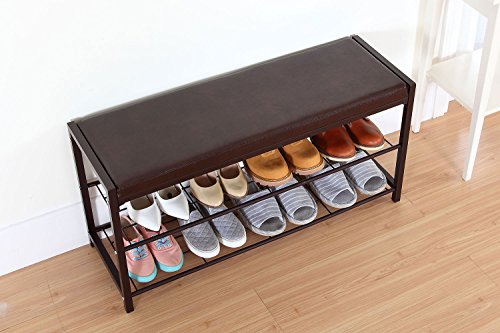 -. Title : StorageManiac 2-Tier Shoe Rack Bench with Faux Leather Seat, Entryway Shoe Storage, Hallway Bench