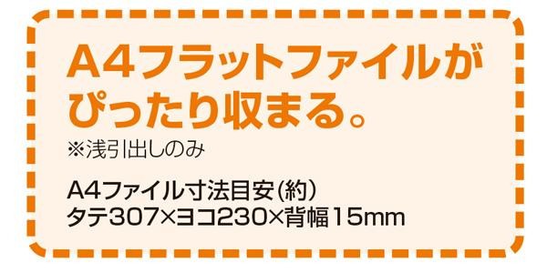 | A4フラットファイルがぴったり収まる。 |
