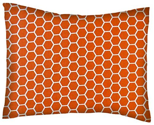 Product Description Baby/Toddler pillow case. Made of an all cotton percale/woven fabric. Opening is in the back center and is envelope style for a secure closure. Features a burnt orange honeycomb print. 0