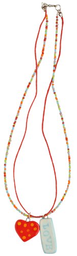 Caffco International Jennifer Jangles 18-Inch Ceramic Multi-Strand Mini Beaded Necklace with Inspiration and Heart Pendant, Love