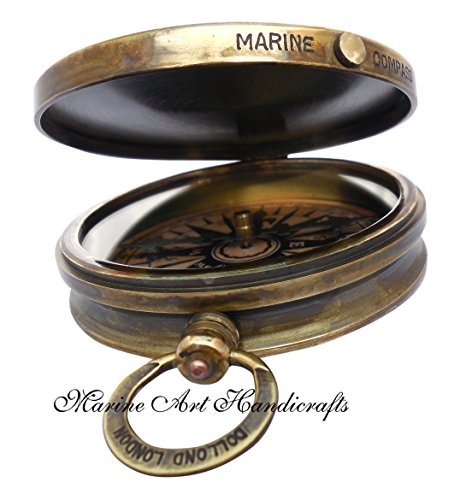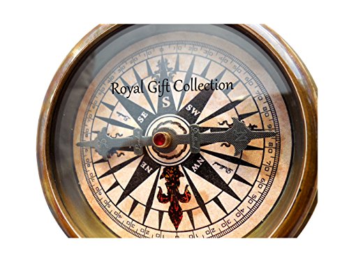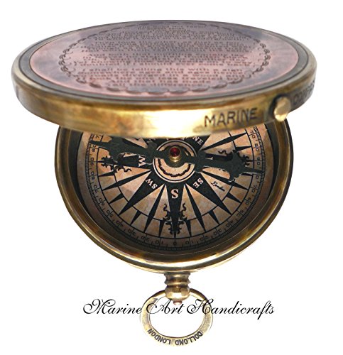 'Robert Frost Poem'' Engraved Brass Compass with Embossed Needle & with Leather Case. C-3241