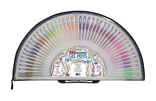 -. Feature : Great pens for mindfulness coloring books, sketching, drawing, scrapbooking, classroom projects and more; intended for use by ages 12 and up / Fine tip pens with free-flowing ink; pens glide smoothly on paper without skipping / 100-piece pen set includes 6 different ink styles -- Basic, Pastel, Neon, Neon Glitter, Metallic and Colored Glitter / Acid-free, archival safe, water-based, non-toxic ink with fine 0.7 to 1.0 mm tips; soft latex-free comfort grips / Convenient packaging in clear semi-circle carry case that zips open and allows for easy access by multiple users; color-coded pen cap for easy identification