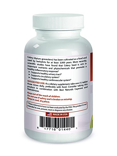 ReleaseDate : 2017-07-26 Studio : Best Nutritionals LLC Publisher : Best Nutritionals LLC Binding : Health and Beauty Product Description Celery (Apium graveolens) has been cultivated as a food and used by herbalists for at least 3,000 years. More recently, scientific studies have found that Celery Seed is rich in bioactive compounds that support a healthy inflammatory response. 0