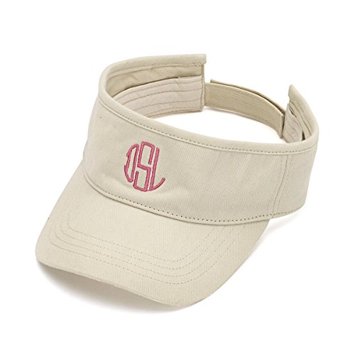Binding : Apparel Product Description YOU MUST CONTACT US VIA THE AMAZON MESSAGE SYSTEM TO TELL US THE LETTER YOU DESIRE. That is our only way to contact you! *** Come back and check the message system within 8 hours of your purchase for a message from us or contact us immediately and tell us the exact letter's you want. *** Made of Soft Cotton *** Adjustable with Velcro Back *** Approximately 19" - 24" Around the Head *** You should receive your Monogrammed Woman's Visor Personalized 7 to 10 Days after your order is confirmed *** Personalized Items are non-refundable. 0
