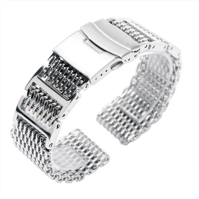 | [해외]럭셔리 20/22/24 미리메터 hq shark 메쉬 시계 밴드 남성 교체 블랙/은색 스테인레스 스틸 블랙 스트랩 패션 블랙 팔찌 |