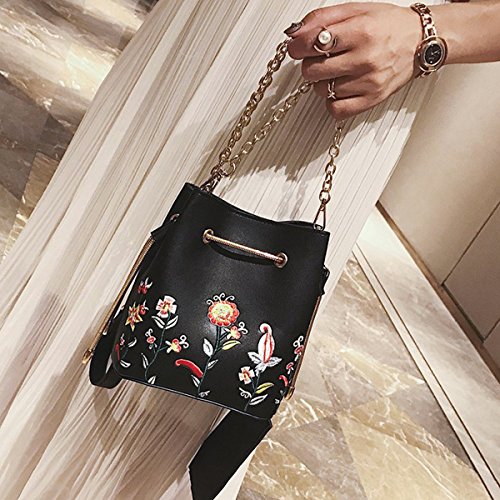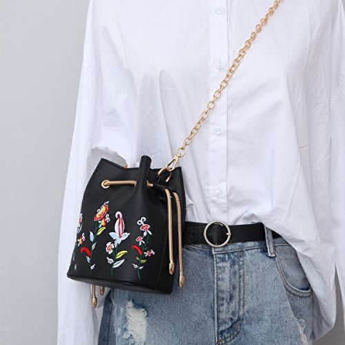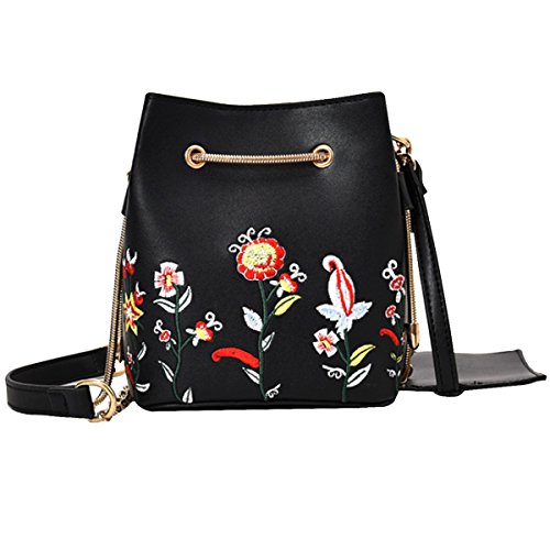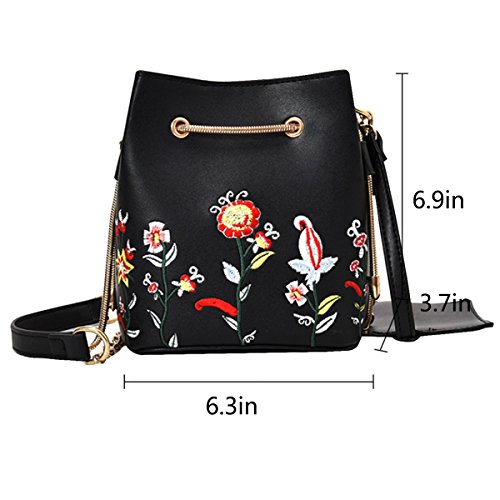 LABANCA Womens Mini Bucket Bag Floral Printed Shoulder Bag with Drawstring Chain Crossbody Bag