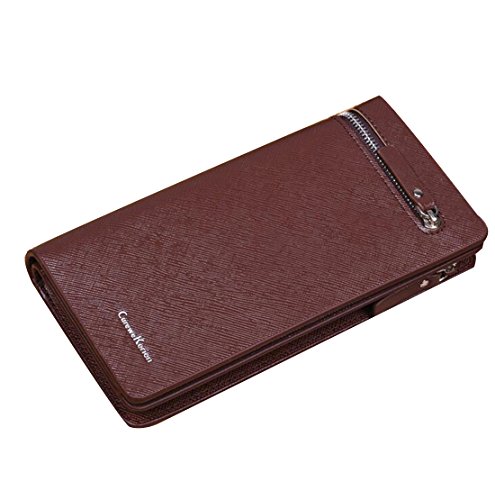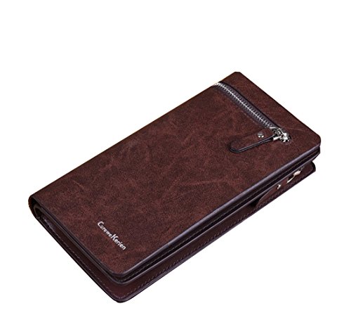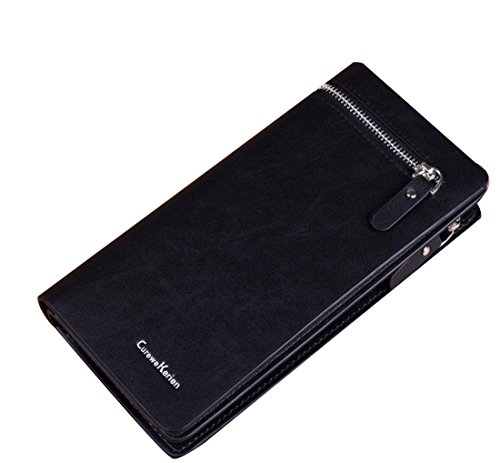 Product Description: In Plain Black or brown or washed look in black and brown. 12 credit card slots, multiple cash compartments, 2 sim card compartments for traveling. 2 organizer compartments for note book / receipts / phone. Easy Clean PU Leather and quality metal zippers. Slim and lightweight 1 in thick and only 150grams. It keeps the slimness, yet not too long as to still fits into short front pockets. For men, it is a great wallet for you. For women, you can buy one for yourself and you can also give it to your father or husband as a sweet gift.