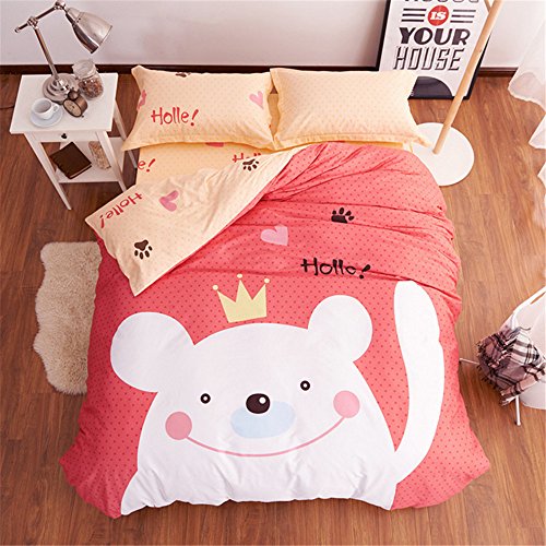 (Auvoau)/Bedding Bath/Bedding/DIRECT FROM USA/Auvoau Bedding Set, Red Polka Dots White Bear Soft Girls Duvet Cover Sets (4pc without comforter)
