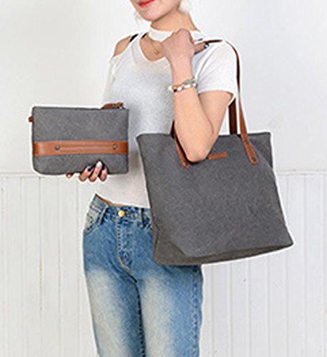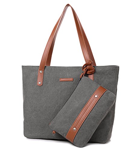 Degohome Canvas City Tote Handbag Shoulder Mix Color Bag for Women Girl Work School