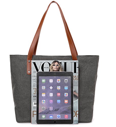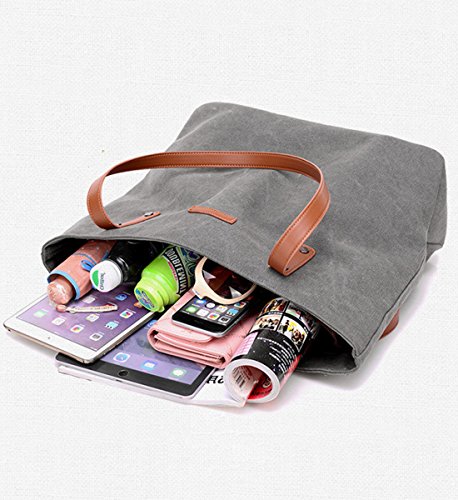 FASHION CANVAS TOTE BAG : Made of High quality Canvas with durable golden hardware and solid-colored fabric lining,large capacity and lightweight.Ideal for using in office, school, travel or any other daily occasions