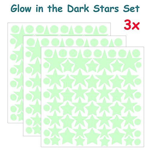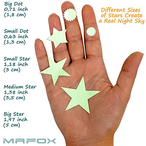 SUPER BRIGHT NIGHT GLOWING STARS - Long Lenght of Glow , Self - Adhesive Stars & Dots - Turn Your Nursery into a Magic Galaxy. Let your kids feel like being under the starry sky. Different sizes of stars create a real night sky. No more plastic look in kids bedding room.