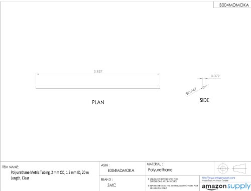 Polyurethane Metric Tubing, 2 mm OD, 1.2 mm ID, 20 m Length, Clear