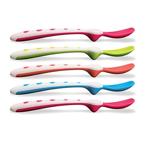 Studio : Anndeeson Publisher : Anndeeson Product Description The Rest Easy Spoons help you say goodbye to messy tables. Rest Easy Spoons are designed to never rest on the table, helping to keep germs off the spoon, and the mess off your table. The soft tip and spatula bowl help to wipe food from baby's mouth. The long handles are great for getting the last few scoops from a deep jar! This set includes (5) spoons in assorted colors and is designed for children 4-months of age and older. Dishwasher safe and BPA-free.