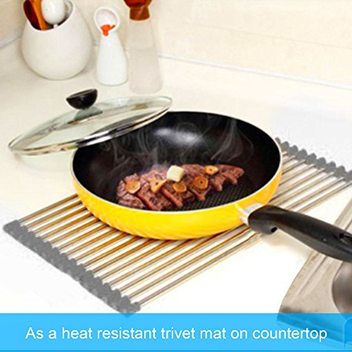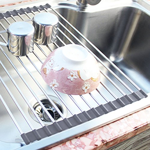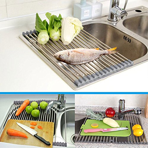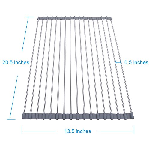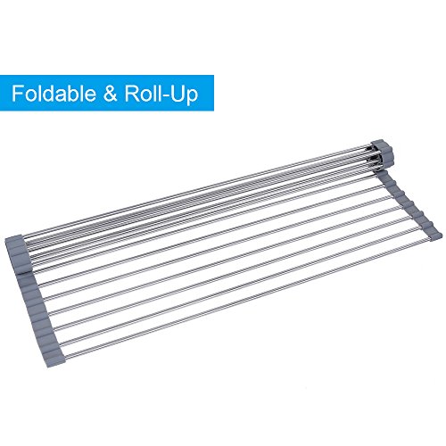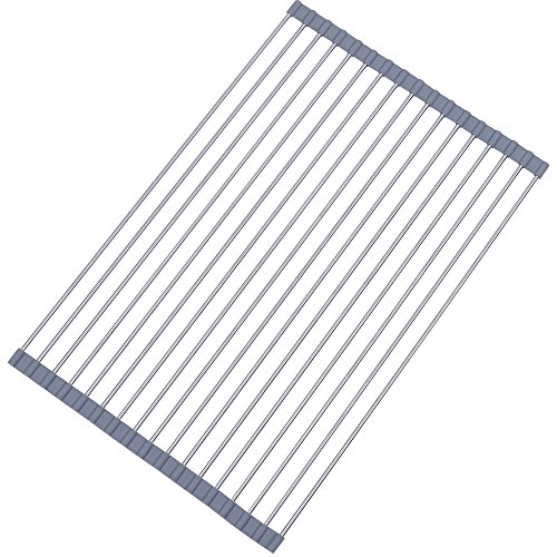 Lictin Foldable Roll-Up Dish Drying Rack Multi-purpose Heat Resistant Over Sink Stainless Steel Rack 20.5''(L)X13.5''(W)(Grey)