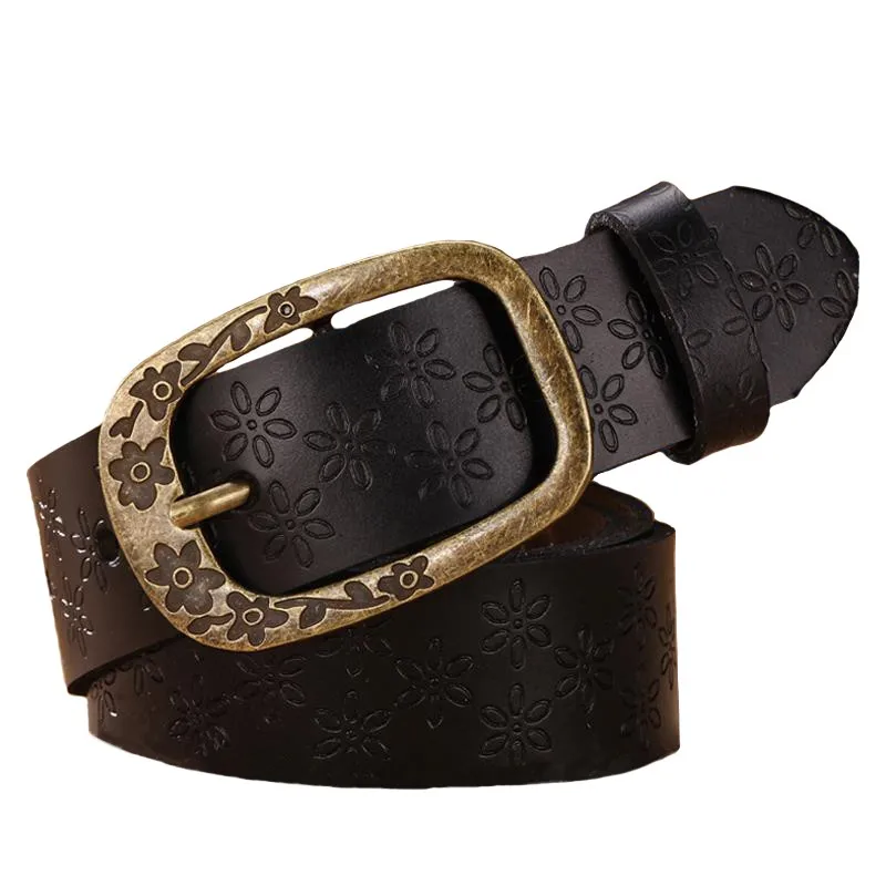 Leather Belt Woman Genuine Cow skin Fashion Floral Curved Buckle Belts For Women |