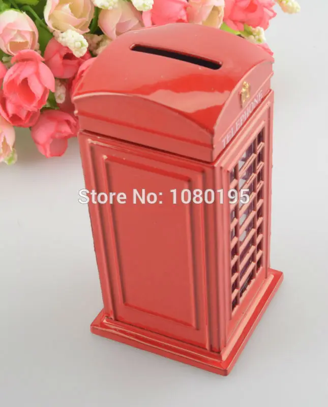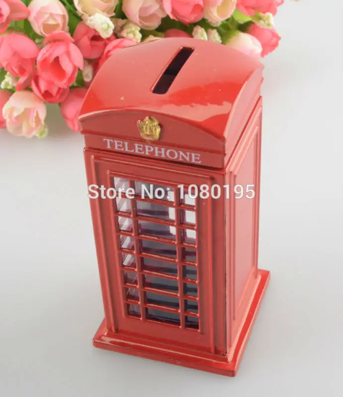 British English Metal Alloy Save Money Coin Piggy London Street Red Telephone Booth Bank Souvenir Model Box Jar BO1375851