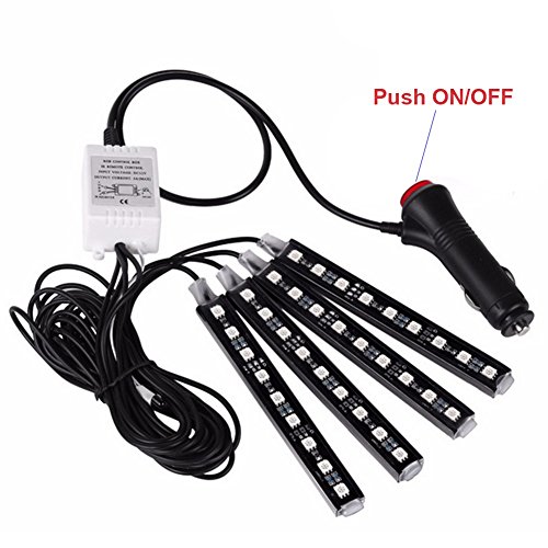 Size: Light Bar Length: 12cm(4.7inch) Light Strip Wire Length: 2 x 120cm(47.2 inch) 2 x 160cm(63 inch) Cigarette Lighter Wire Length: 50cm(19.7 inch) NOTE: 1.Please remove the battery cover before using the remote. 2.The remote should point to the box with the receiver. 3.Supply voltage of this product is DC 12V