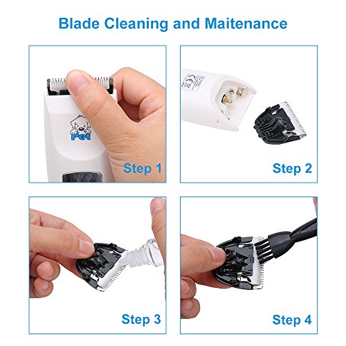 Low Maintenance and Safe for Pets -- R-shaped anti-allergy stainless steel blade combining with ceramic blade to ensure efficient cutting and won't hurt your pet's skin; blade stays cool with continuous use; blade is also detachable and washable for cleaning and maintenance.