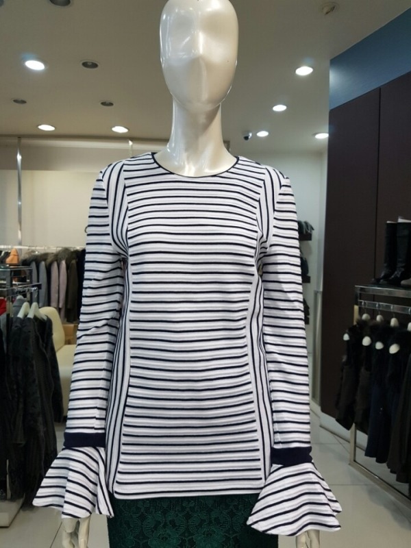 프릴소매 장식 단가라 티셔츠