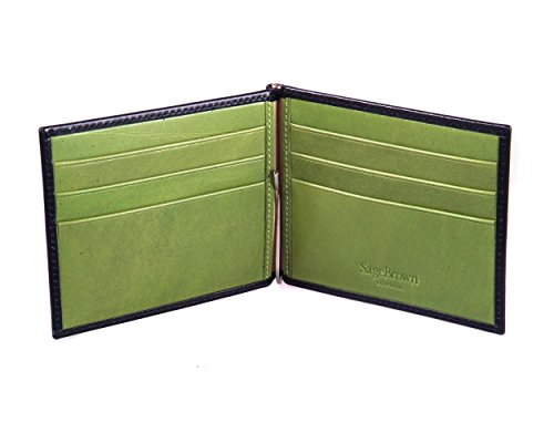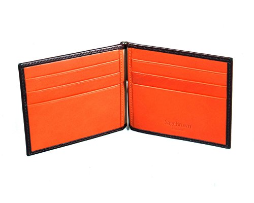 Studio : SageBrown Publisher : SageBrown Binding : Apparel Product Description Handmade in beautiful calf leather this wallet comes in a range of sumptuous classic and contemporary colour combos to hold credit cards and a central money clip to hold cash. The front is stylishly plain and ideal for personalisation. Open up the wallet to reveal 3 horizontal credit card slots right and left with beautifully turned edges. On the lower right hand section are the embossed words SageBrown Fine Leather . In the middle you will find a silver metal money clip to hold notes. The reverse is plain. 0