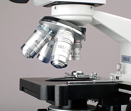 AmScope T120B Professional Siedentopf Trinocular Compound Microscope, 40X-2000X Magnification, WF10x and WF20x Eyepieces, Brightfield, LED Illumination, Abbe Condenser with Iris Diaphragm, Double-Layer Mechanical Stage, 100-240VAC