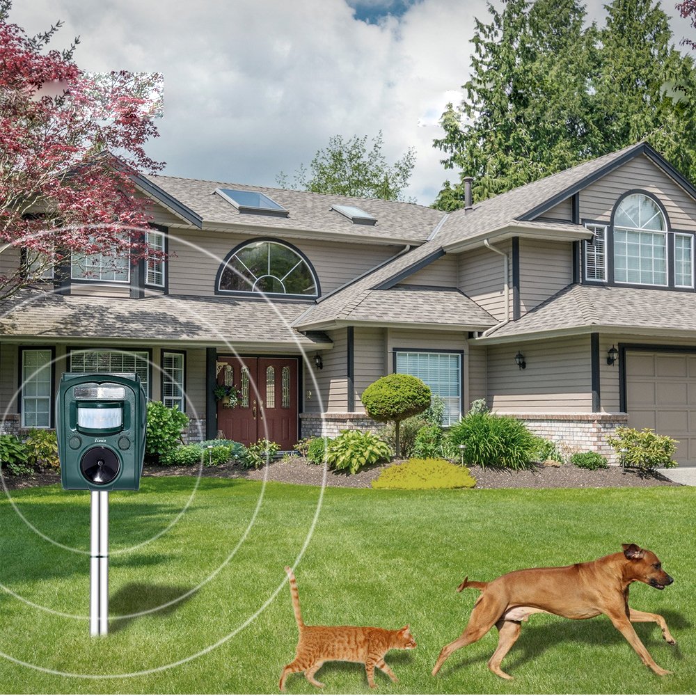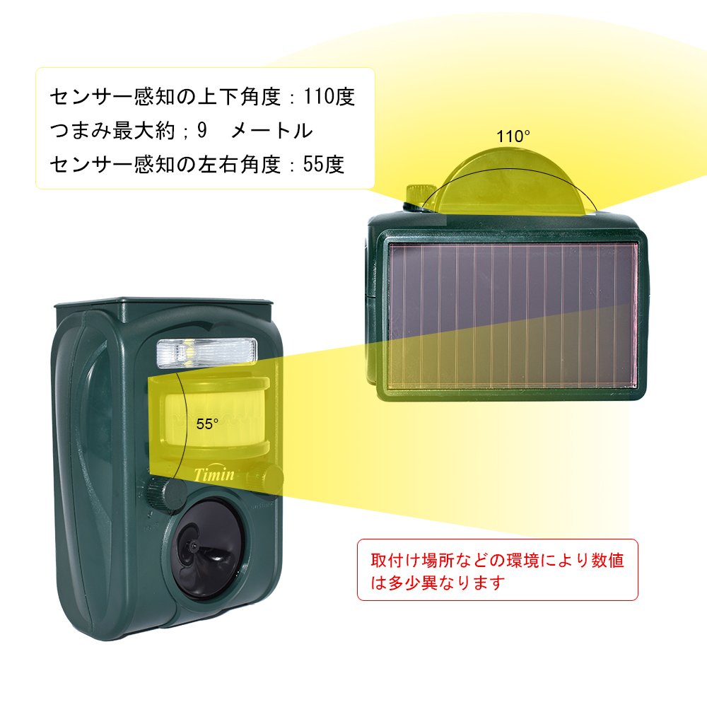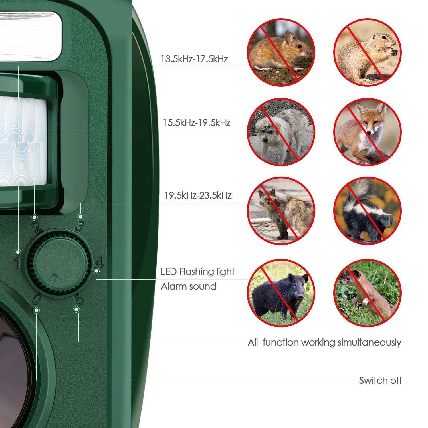 Protect from all harm by automatic infrared sensing + strong flash + ultrasonic wave + warning.