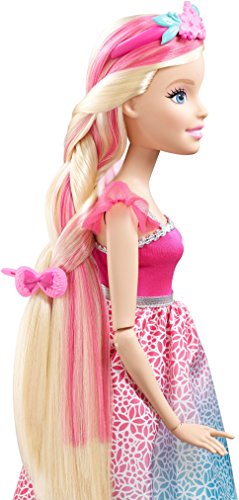 -. Binding : Toy -. Brand : Barbie -. EAN : 0887961324969 -. Feature : This extra-tall Barbie princess doll has extra-long hair and accessories for endless hairstyling fun! / She comes with a brush that doubles as accessory storage for easy clean up! / Hairstyling accessories include three headbands with decorative sculpts, like a bow or flowers; two decorated hair combs; and one barrette with a bow / The 17-inch tall Barbie doll shines in a long pink and blue gown with a sheer long underskirt, shimmery ombré overlay, silver-trimmed bodice and matching shoes / Style a fabulous hairdo to suit your story -- then take it down and start again with endless possibilities in the Endless Hair Kingdom! -. IsAdultProduct : 0 -. ItemPartNumber : DPR98 -. Label : Mattel - Import (Wire Transfer) -. Manufacturer : Mattel - Import (Wire Transfer) -. Model : DPR98 -. MPN : DPR98 -. NumberOfItems : 1 -. PackageQuantity : 1 -. PartNumber : DPR98 -. ProductGroup : Toy -. ProductTypeName : TOYS_AND_GAMES -. Publisher : Mattel - Import (Wire Transfer) -. Size : 17 inches -. Studio : Mattel - Import (Wire Transfer) -. Title : Barbie Endless Hair Kingdom Princess Doll, Pink/Blue -. UPC : 887961324969 -. Warranty : 1 year warranty against manufacturer defects