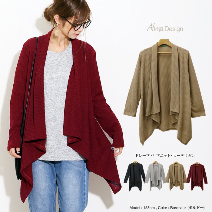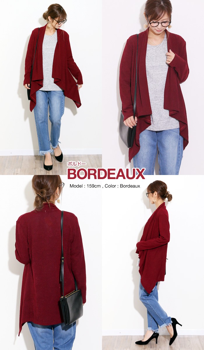 | サイズ | Mサイズ | | 実寸 | 着丈:74cm 身幅:46cm 肩幅:36cm 袖丈:56cm 袖口:13.5cm 裾幅:46cm | | 素材 | アクリル 100% | | 生産国 | 中国 | | 裏地 | なし | | 生地の伸縮 | あり | | 生地の透け感 | 若干あり | | カラー | 01. ブラック 02. グレー 03. ベージュ 04. ボルドー | | 注意点 | ▼綿混合商品は洗濯時に多少縮む事がございます。 ▼パソコン、モニター等の環境により、実際の商品素材カラーが多少異なる場合が御座います。予めご了承ください。 ▼お手数ですが必ずお買い物ガイドを一読頂いてからご利用いただきますようお願い申し上げます。 | |