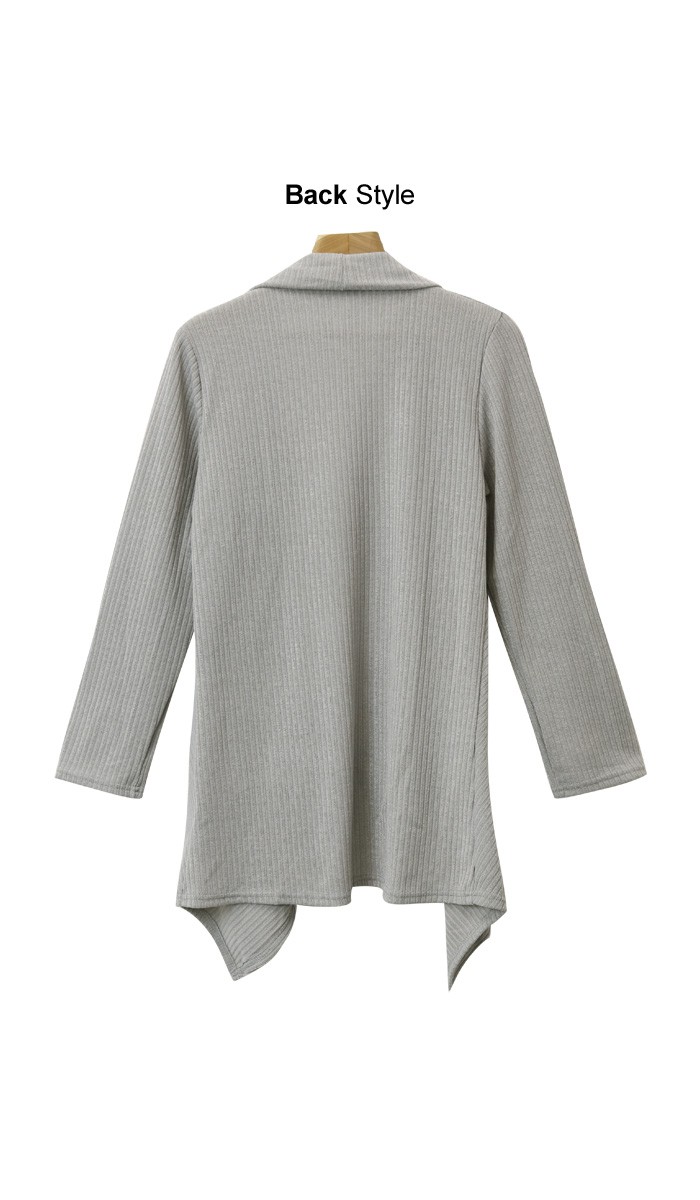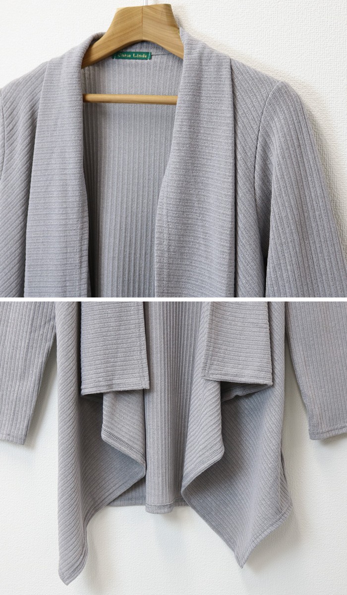 ボタン無しのトッパータイプ。ドレープが効いたデザインでフェミニンな印象に。